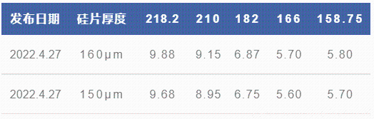 與4月2日價(jià)格相比,各尺寸P型單晶硅片(160μm)價(jià)格上漲0.06-0.14元/片。